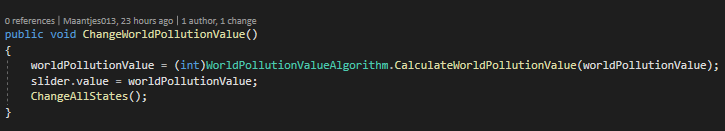 Vervolgens wordt er voor elk object die kan veranderen, de statechange method opgeroepen waarin de nieuwe worldPollutionValue wordt meegegeven.